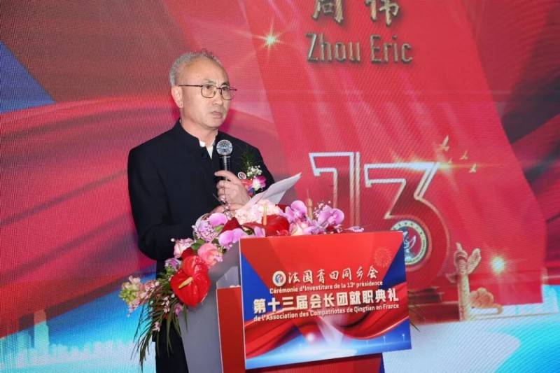 刚刚荣获法国国民议会勋章的新任会长周金伟在就职演讲中表示,三十八万青田儿女遍布全球,在欧洲扎根最深。我们以勤劳能干、重情尚义、团结互助而著称。成立于 1994 年的法国青田同乡会,始终秉持这份精神,团结近四万旅法乡亲,帮助大家在异乡站稳脚跟,同时心系故土,支持家乡建设,亲历了华侨华人在法兰西大地奋斗创业的历程。法国青田同乡会的发展史,正是海外青田人奋斗史的一个缩影。我在同乡会这个大家庭里已走过近三十载春秋。这近三十年的陪伴与坚守,让我对乡情有了更深的眷恋,对责任有了更深的敬畏,也让我更加坚定了与大家携手前行的信念。乡情,是我们共同的根;担当,是我们共同的誓言。只要我们团结一致、脚踏实地,法国青田同乡会一定能够在新时代稳步前行、再创辉煌。