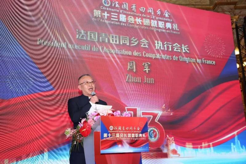 法国青田同乡会第十三届会长周金伟作就职演说。