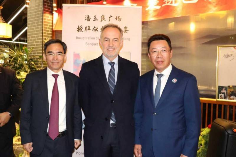 中国驻法国大使馆领侨处万磊参赞,法国华侨华人会主席蔡君柱,法国亚裔社团联盟主席孙文雄,以及中法各界嘉宾百余人齐聚一堂,共同见证了这一荣耀时刻。