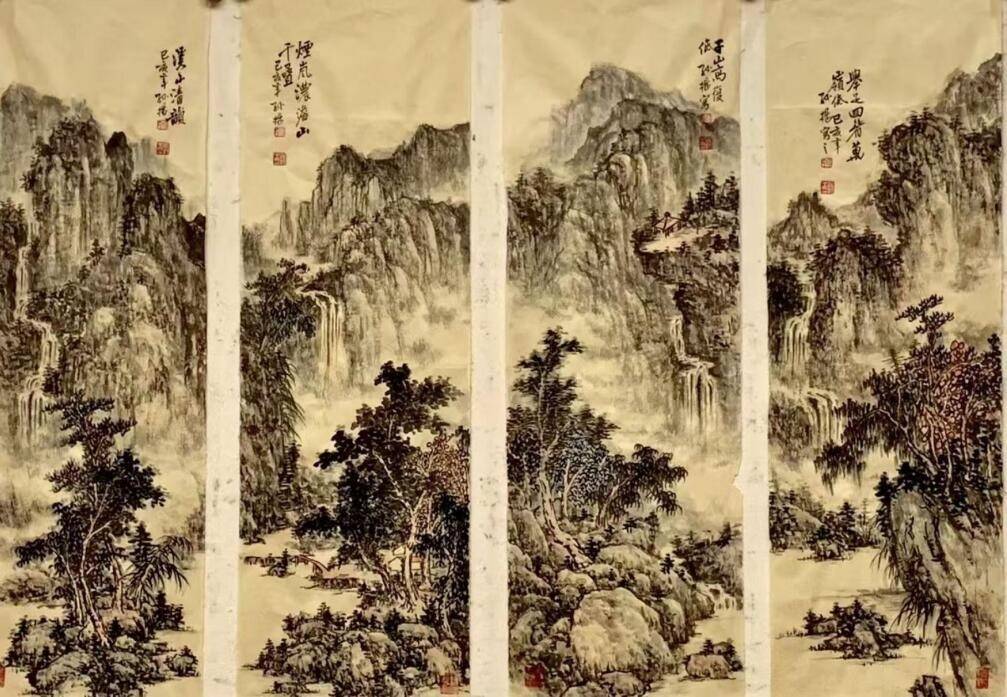 题材:山水为主,书法和花鸟为辅