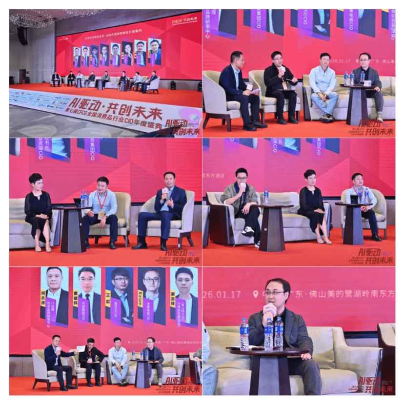 圆桌论坛围绕“AI驱动消费新生态:从技术落地到商业价值重构”这一主题展开,由知名品牌研发中心IT经理何永涛先生主持,丹姿集团CIO黄雄炜、雅戈尔CIO王歆、米果电商CIO kason、力得和贸易(深圳)有限公司(高山特)CIO谢海锋、路卡集团CFO李惠、美妆行业资深CIO兼SFCIO秘书长李蒲、影儿时尚集团CIO孔令军等七位重量级嘉宾参与对话。在40分钟的深入交流中,嘉宾们从AI技术落地实践、未来战略规划、风险管控机制及技术创新路径等维度展开探讨,结合各自企业实际案例,分享了AI在消费领域的应用场景与价值转化经验。何永涛先生开场即指出,AI正从辅助工具转变为驱动消费生态变革的核心引擎,需关注技术落地与商业价值的深度融合;黄雄炜以丹姿集团为例,阐述了AI如何赋能个性化护肤方案推荐,提升用户体验与品牌黏性;王歆则聚焦雅戈尔,探讨AI在供应链优化与智能制造中的实践,强调数据驱动决策对降本增效的关键作用;kason结合米果电商业务,分析了AI在精准营销与用户行为预测中的应用,如何助力电商平台实现流量转化与留存;谢海锋从力得和贸易视角,分享了AI在跨境贸易合规与风险预警中的创新实践,凸显技术对全球化运营的支撑;李惠作为CFO代表,讨论了AI在财务预测与成本优化中的价值,如何通过智能分析提升企业资金使用效率;李蒲则从行业宏观层面,剖析了AI技术普及中的标准化挑战与生态共建需求,呼吁产业链协同创新;孔令军以影儿时尚集团案例,展示了AI在时尚设计、库存管理及全渠道融合中的综合应用,强调技术对品牌差异化竞争的赋能。嘉宾们观点碰撞激烈,不断抛出具有前瞻性和实践价值的新见解,引发了与会嘉宾的广泛共鸣与热烈讨论。