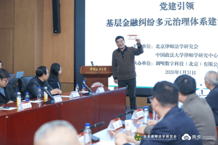 继1月18日“安澜工程——基层金融纠纷多元治理体系建设”项目在云南西双版纳正式启动后,1月31日,一场深度聚焦基层实践与理论融合的专题研讨会在中国政法大学成功召开。本次研讨会由北京律师法学研究会与中国政法大学律师学研究中心联合主办,调呗数字科技(北京)有限公司承办,旨在汇聚政、法、银、学、社多方智慧,共同探索党建引领下基层金融纠纷预防与化解的系统化路径,真正将治理效能贯穿至“最后一公里”。