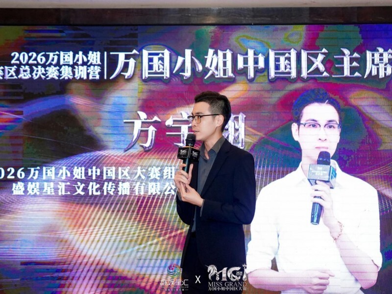 万国小姐中国区组委会主席、盛娱星汇文化传播有限公司董事长方宇翔先生为全体参赛佳丽上台致辞。他表示,本次四天的封闭式专业化集训,将通过系统化的打磨与培养,助力佳丽们实现外在形象与内在素养的双重提升,达成美丽与智慧的深度融合,期待每一位参赛选手都能在集训中破茧蜕变,在未来的舞台上闪耀光芒。